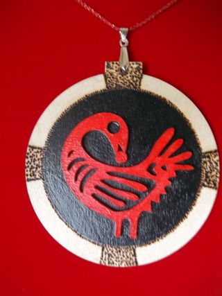RED SANKOFA BIRD WOODEN MEDALLION
