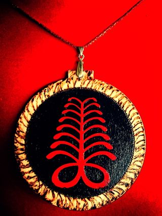 PAINTED RED AYA - THE FERN - ENDURANCE -DEFIANCE-INDEPENDANCE WOODEN MEDALLION