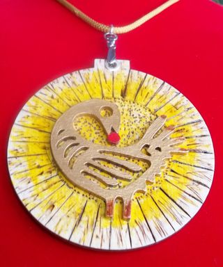 GOLD SANKOFA BIRD WOODEN MEDALLION