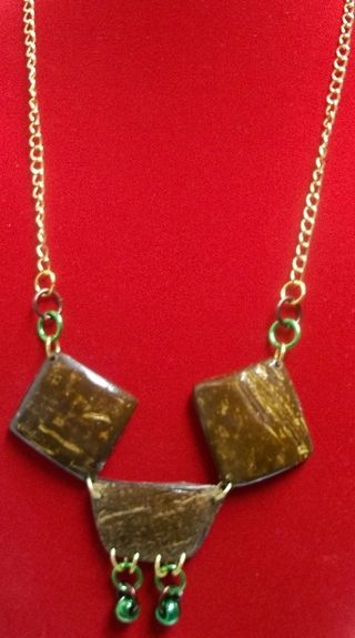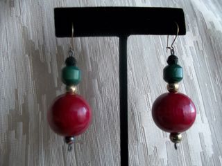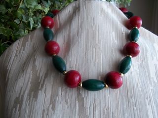 Red, Gold, Black and Green Bead Earrings and Necklace Set