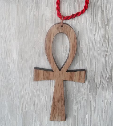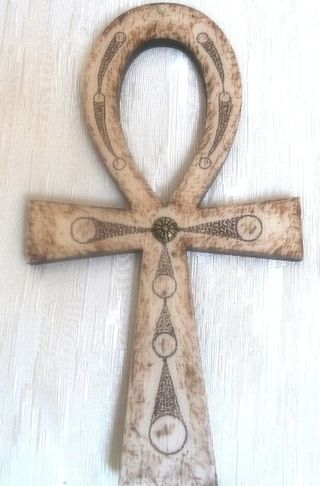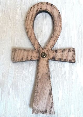 CIRCLE DESIGN WOODEN ANKH (9"x5")