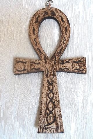 SPIRAL DESIGN WOODEN ANKH (9"x5")